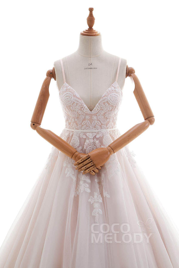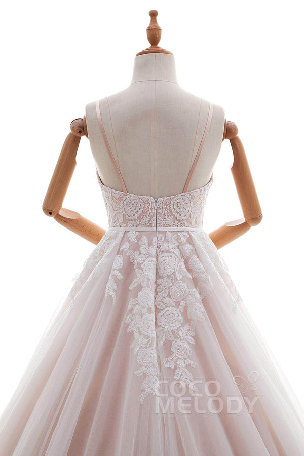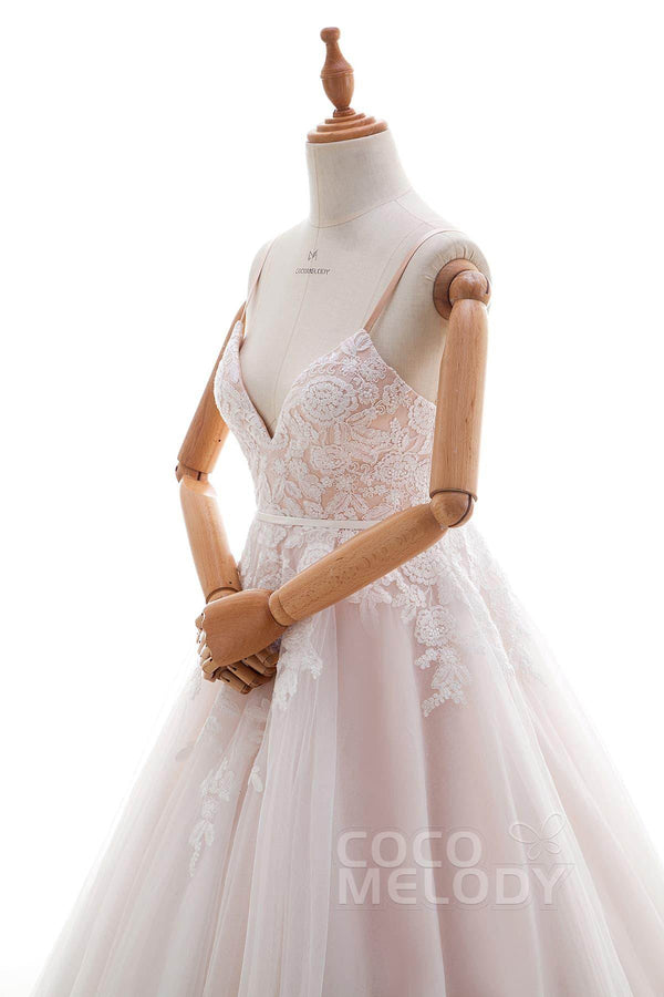 Radiate elegance in this ivory-champagne A-line gown, perfect for church, hotel, Victorian, or hall weddings. The spaghetti straps, delicate appliqués, and sash detailing offer timeless beauty, while the chapel train adds a touch of grace. Fully lined and customizable, this dress ensures a stunning look for any venue.