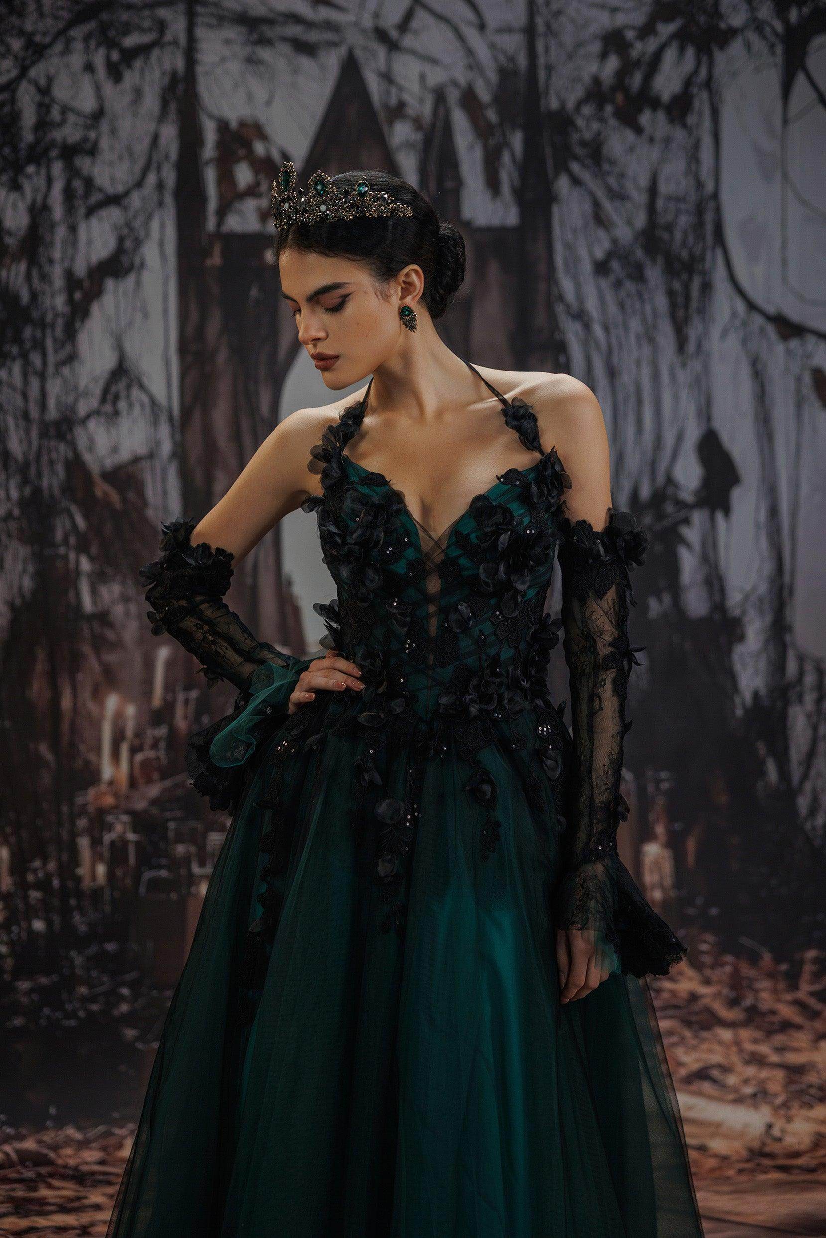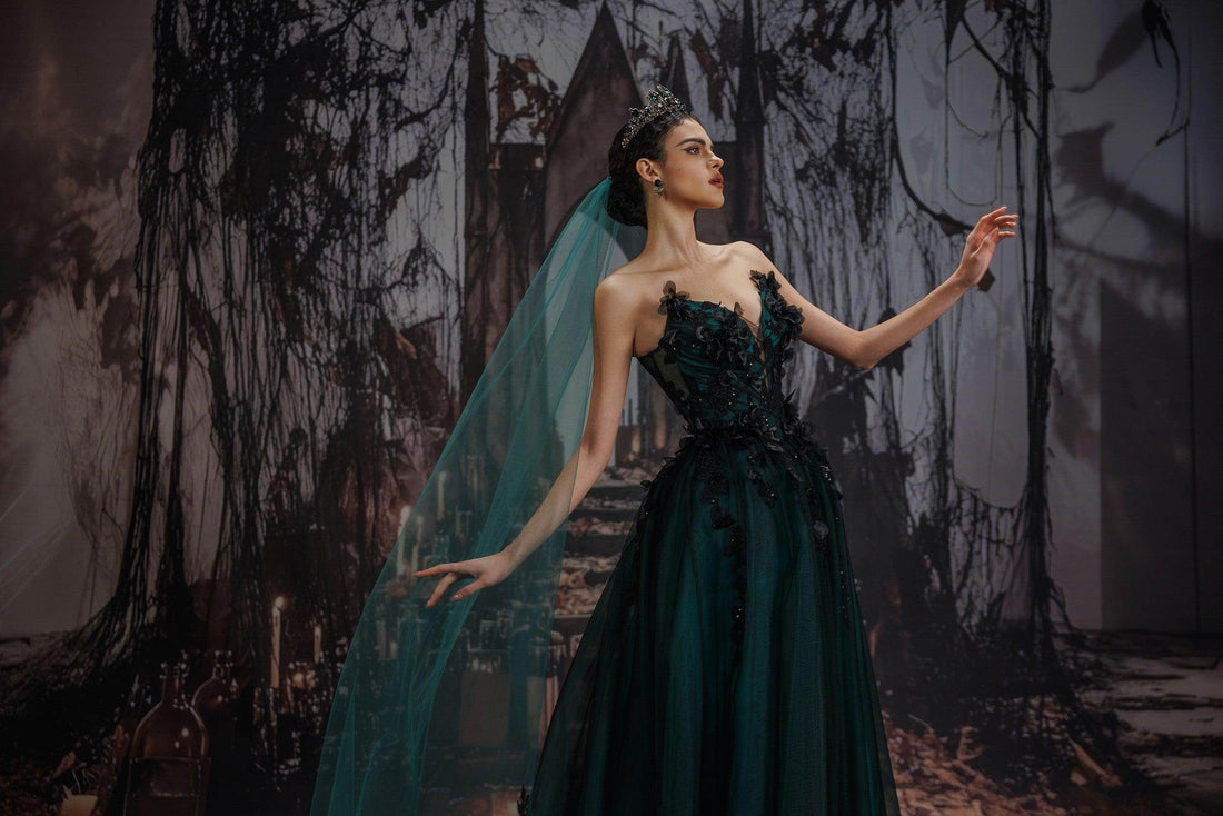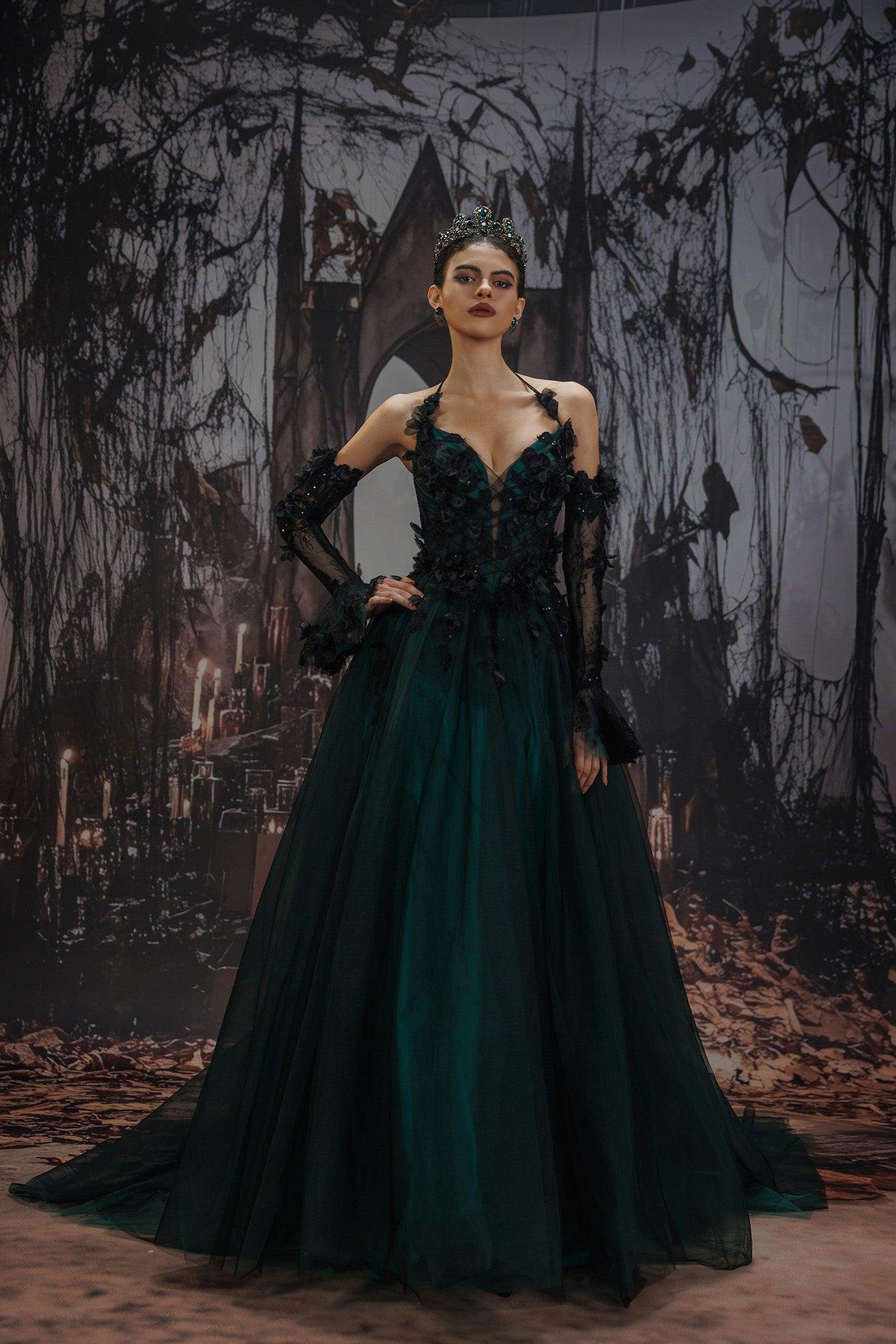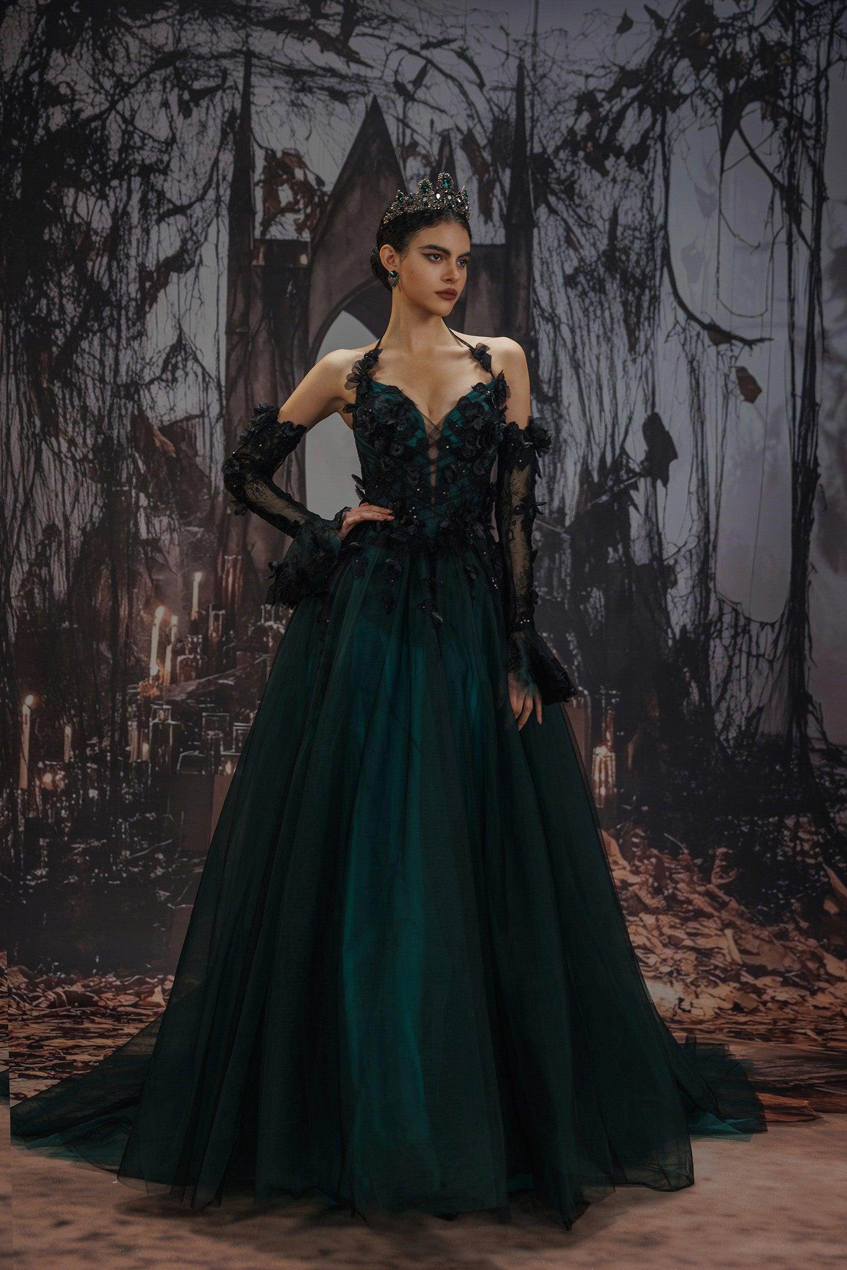Home / Black wedding dresses / A-Line Chapel Train Sequined Lace Tulle Wedding Dress CW3347