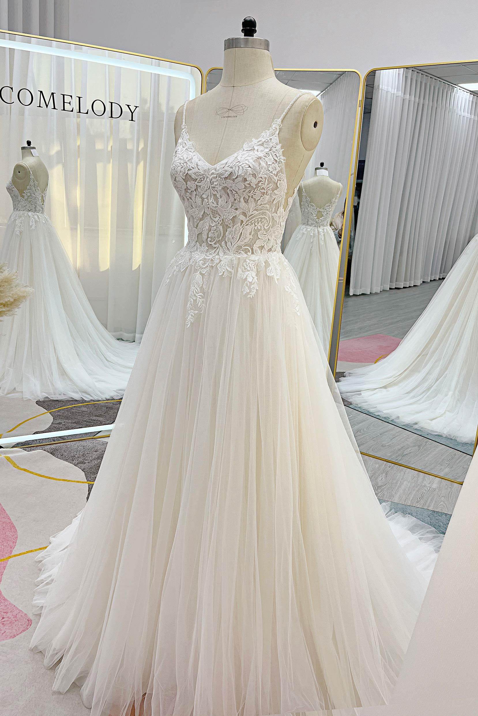 A-Line Court Train Lace Tulle Wedding Dress CW3226