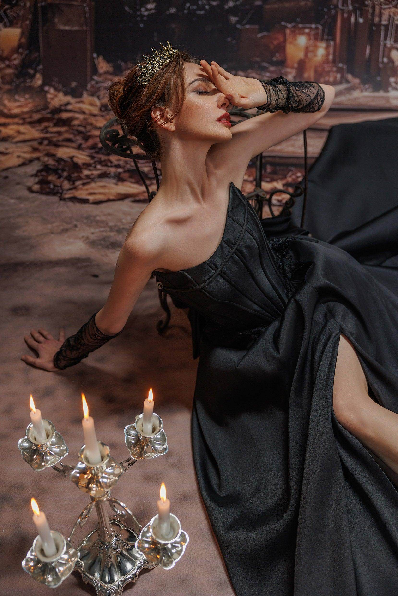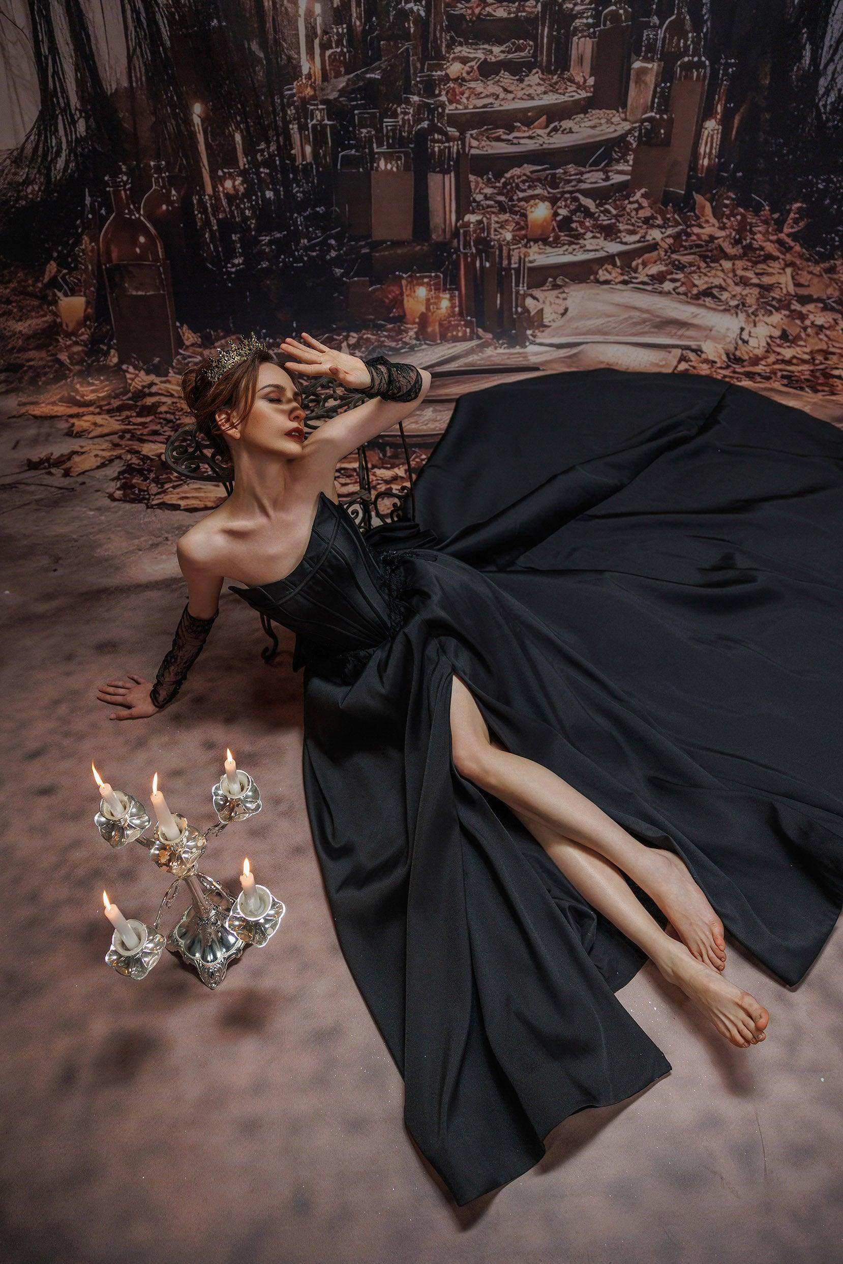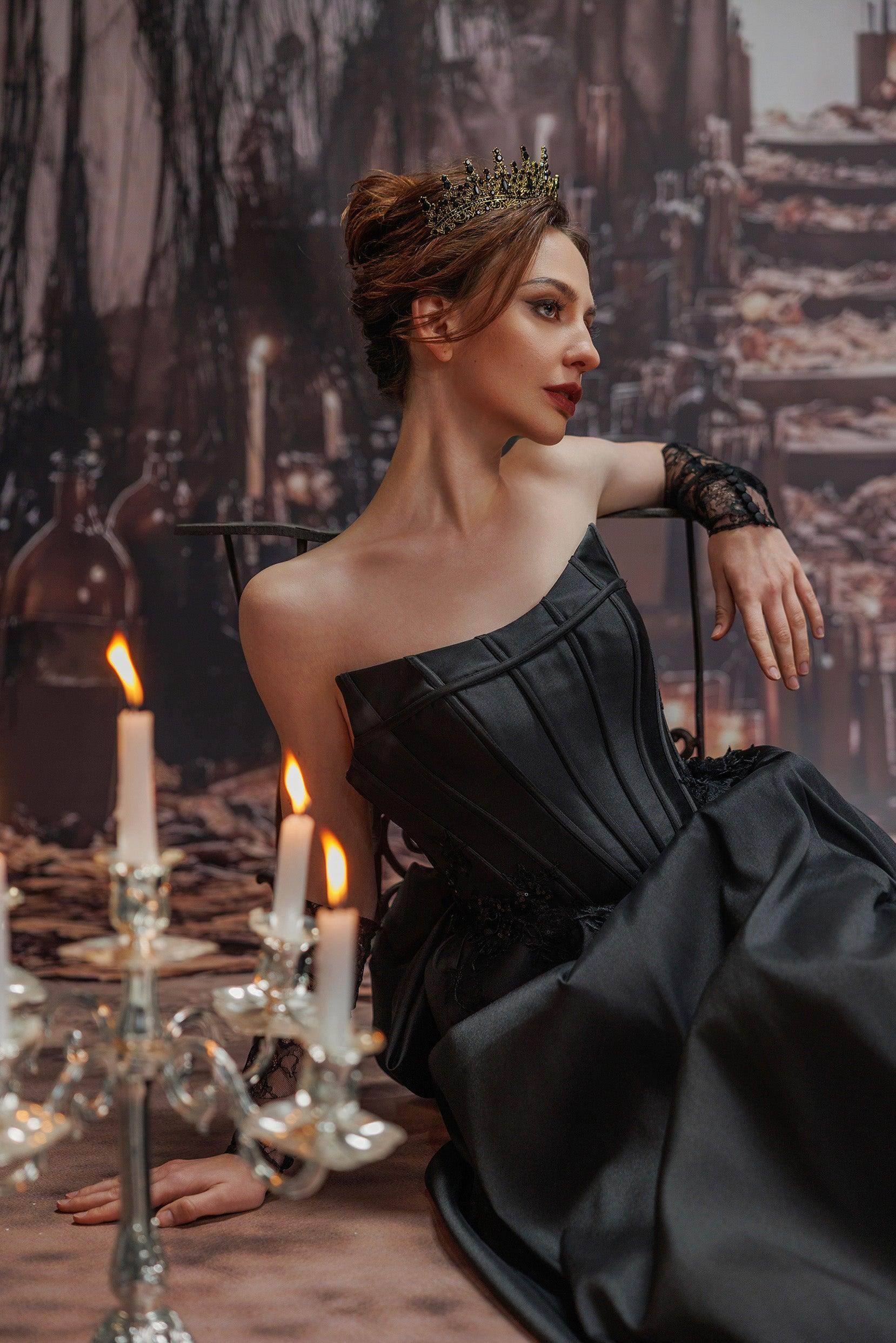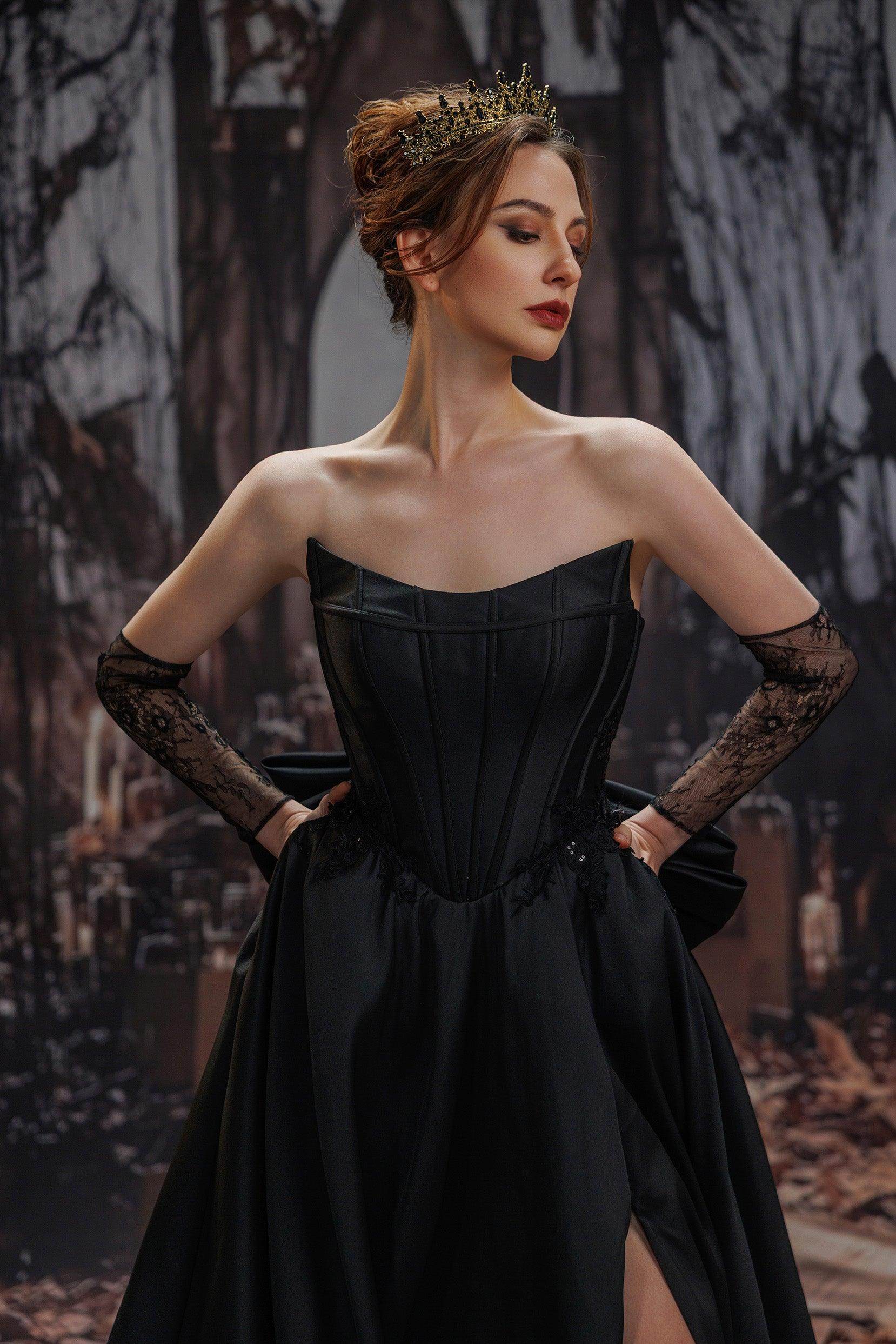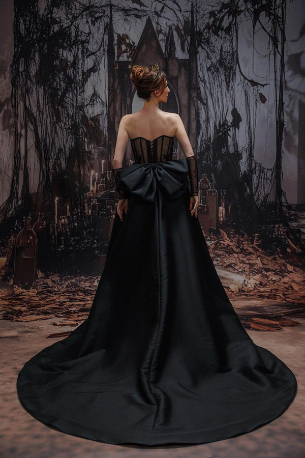 Home / Black wedding dresses / A-Line Court Train Mikado Tulle Wedding Dress CW3350