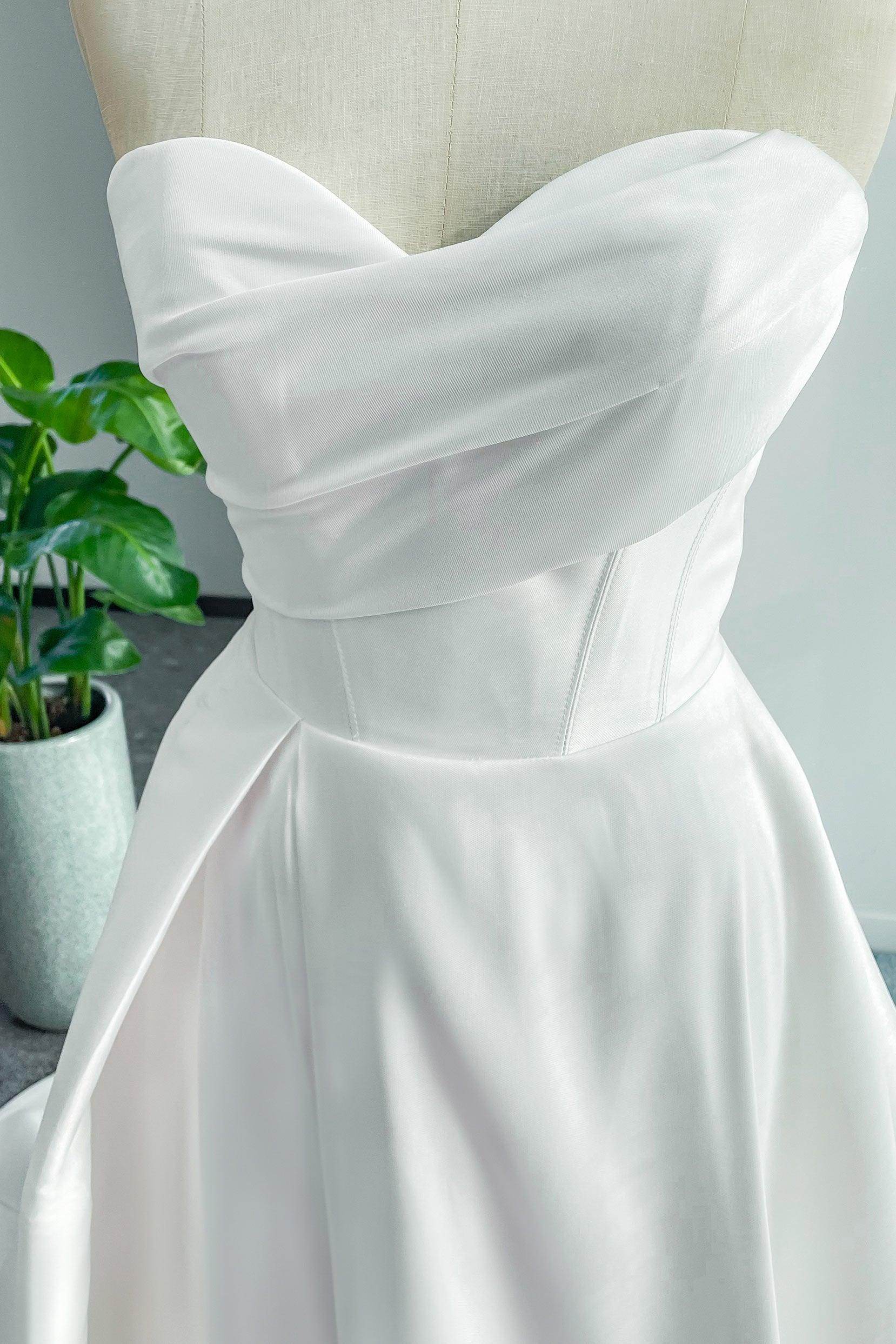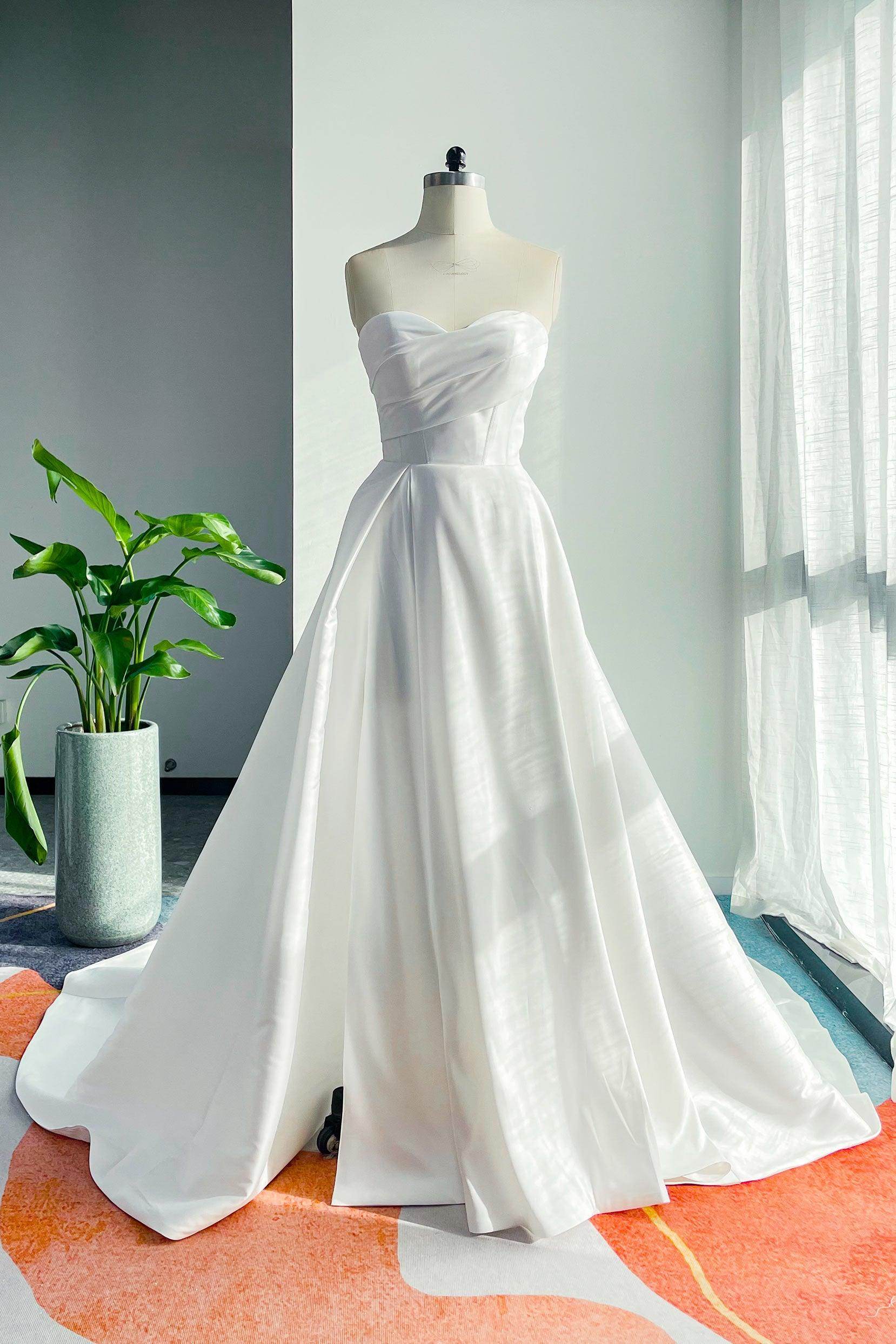 Introducing the a line wedding dress: an ivory A-line beauty featuring a flattering sweetheart neckline and elegant pleating. Ideal for hotel, church, beach, or hall weddings—simple yet exquisite, and customizable for every bride!