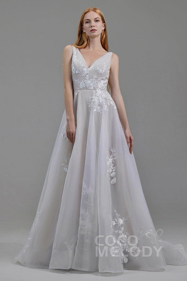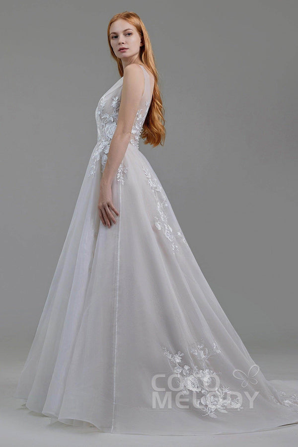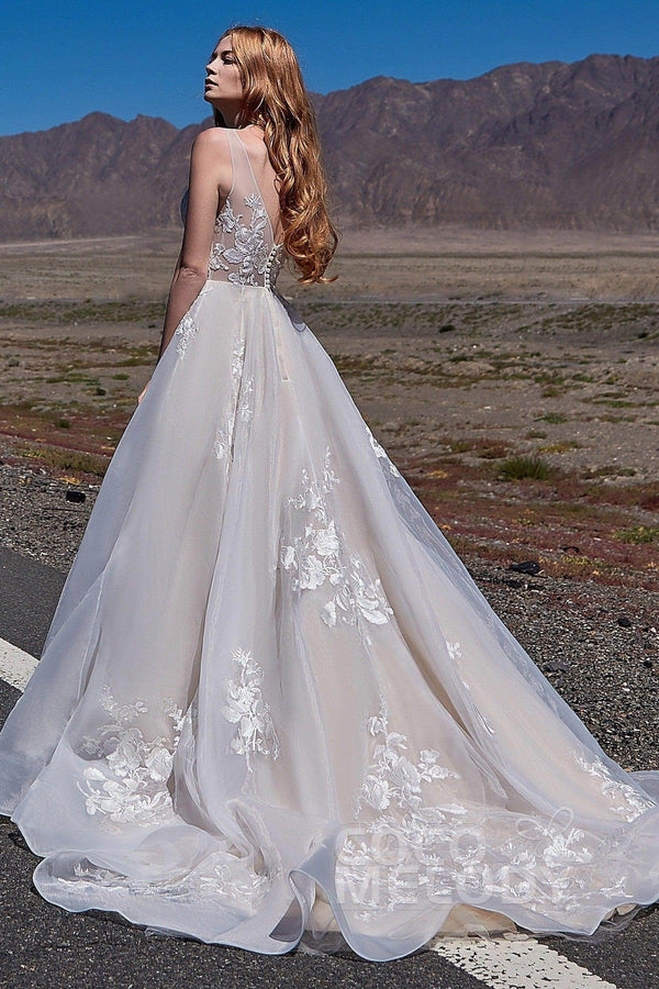 The SHERRY boho wedding dress radiates elegance with a stunning V-neckline and intricate appliqués. Its A-line silhouette and court train create timeless allure, perfect for church, hotel, or hall weddings. Crafted from luxurious tulle and organza, this dress is available in all sizes for a flawless fit on your special day!