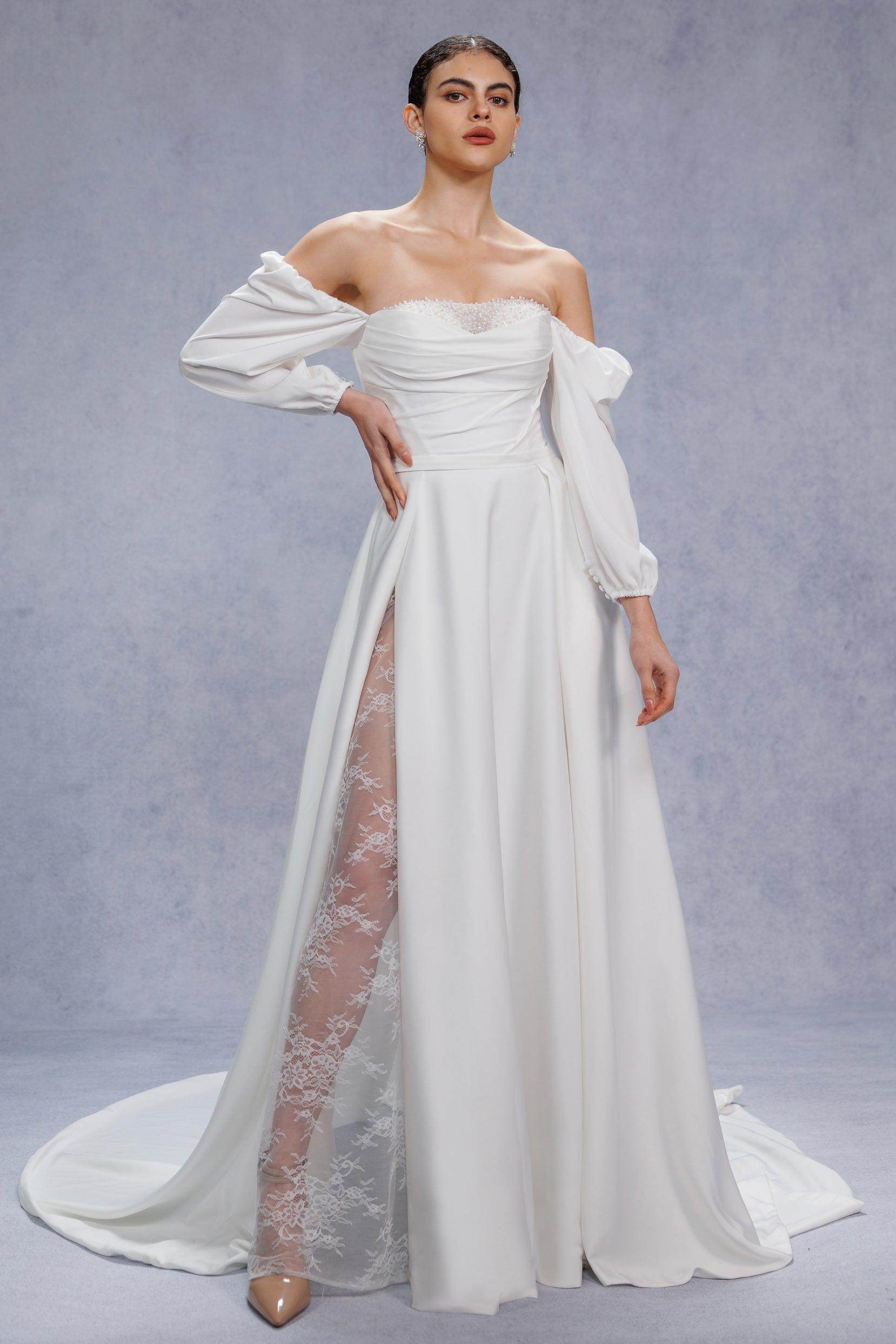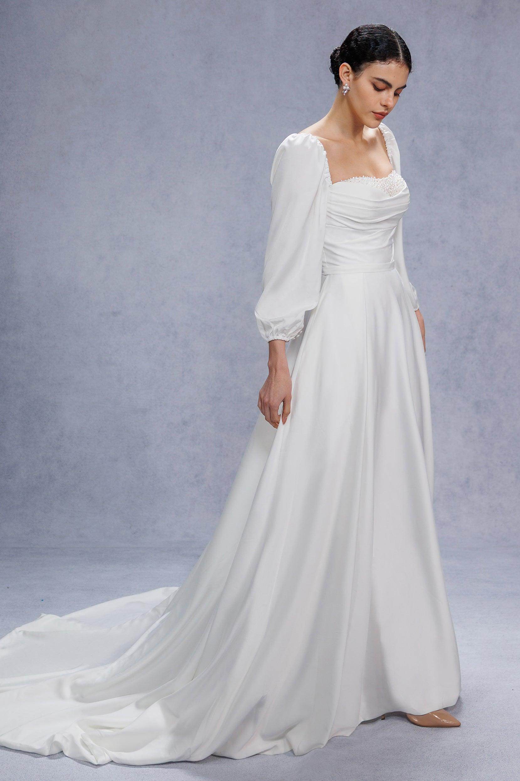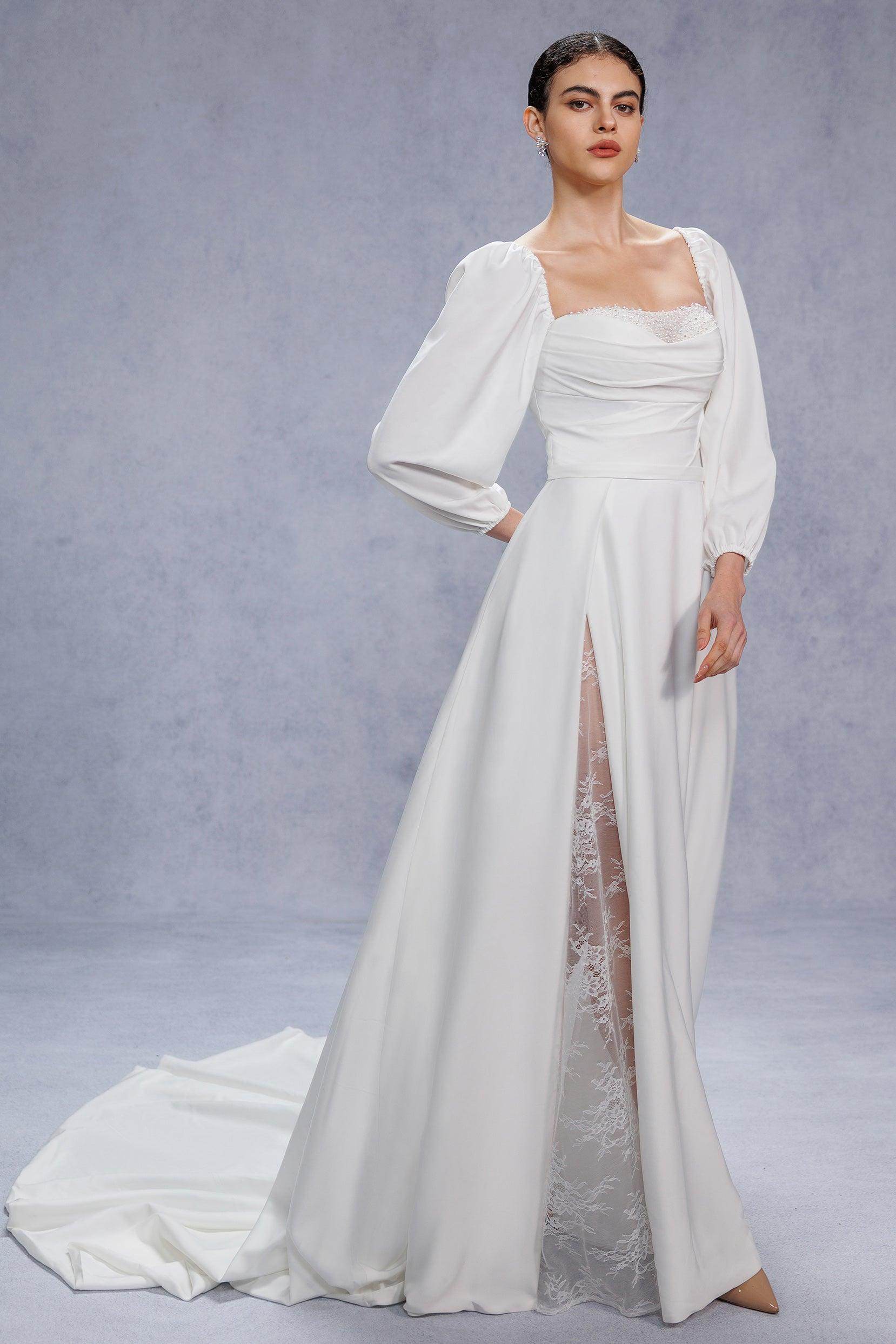 Elevate your wedding day with a sleek, simple wedding dresses that exudes elegance, sophistication, and effortless charm for a picture-perfect bridal moment.