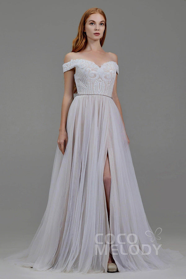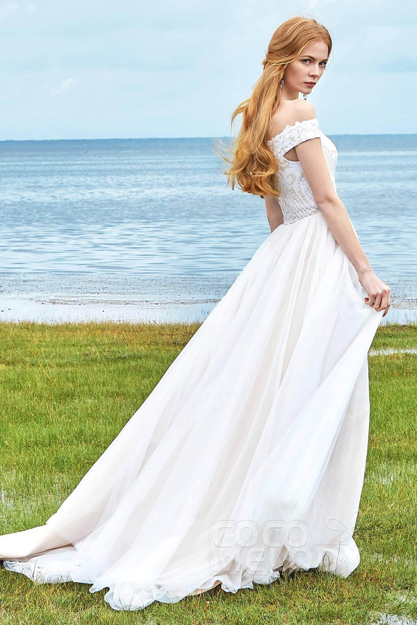 The “Belinda” wedding dress radiates timeless elegance with its off-the-shoulder neckline and delicate sequin lace. Perfect for creating a princess-like aura, it flows gracefully in an A-line silhouette, ideal for church, hotel, or hall weddings . This enchanting design flatters every figure, from petite to plus size.