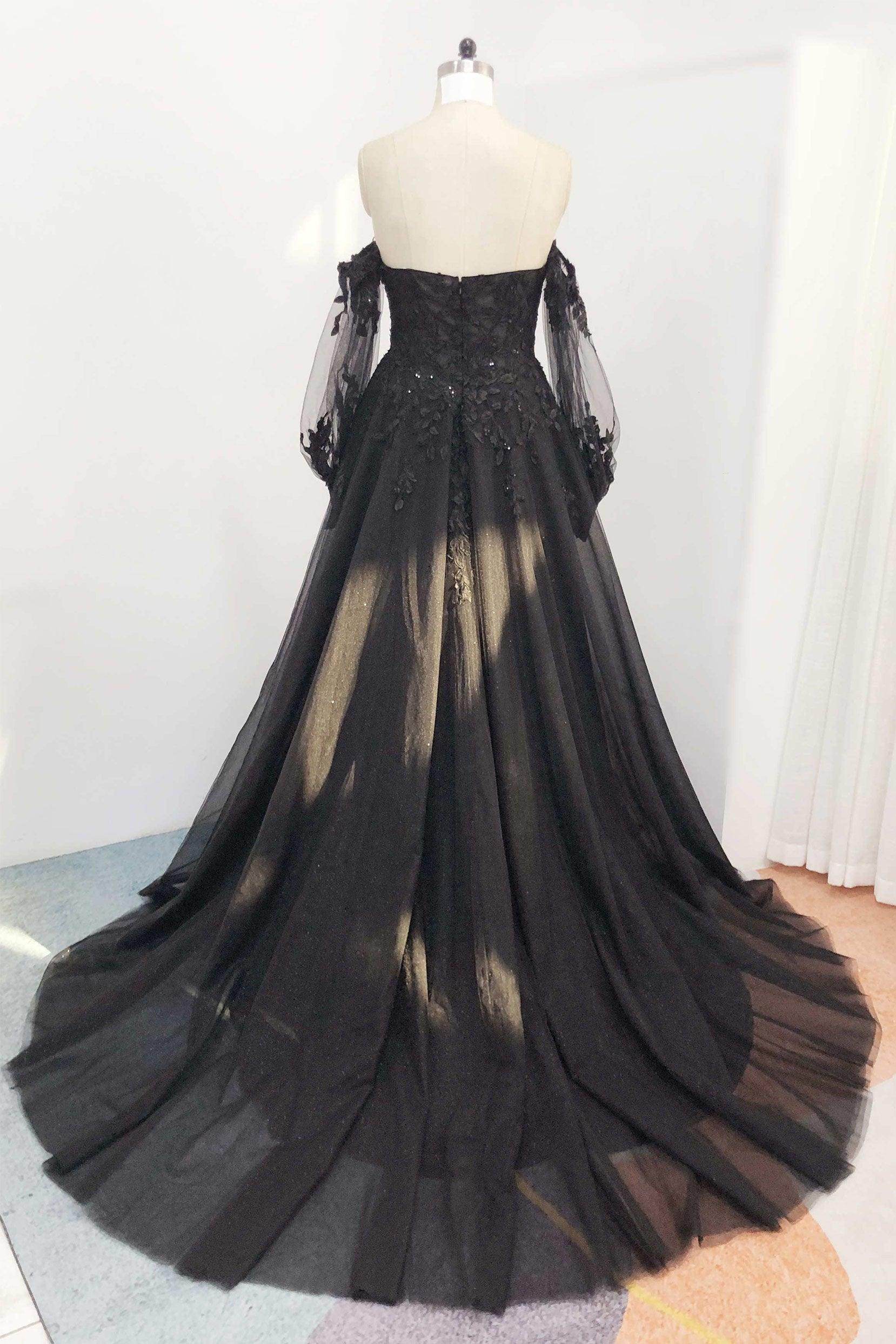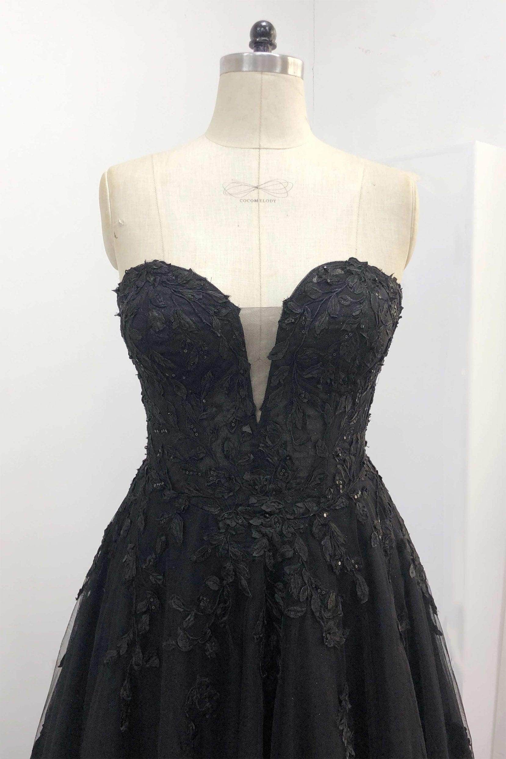 Chic Black Fit and Flare Gown with Sweetheart Neckline CHB2028