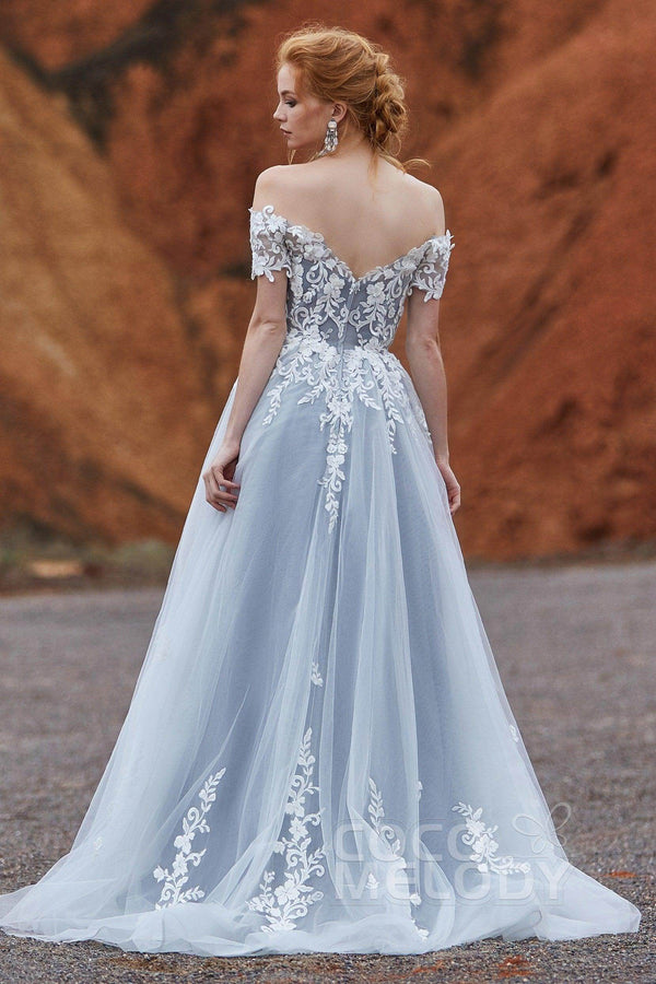 Introducing the epitome of Gothic chic: an amazing gothic wedding dress. Its off-shoulder design and structured silhouette with boning create a sculpted allure. Delicate Appliques adorn the tulle A-line skirt, exuding ethereal charm. Embrace timeless elegance with a touch of Gothic flair.
