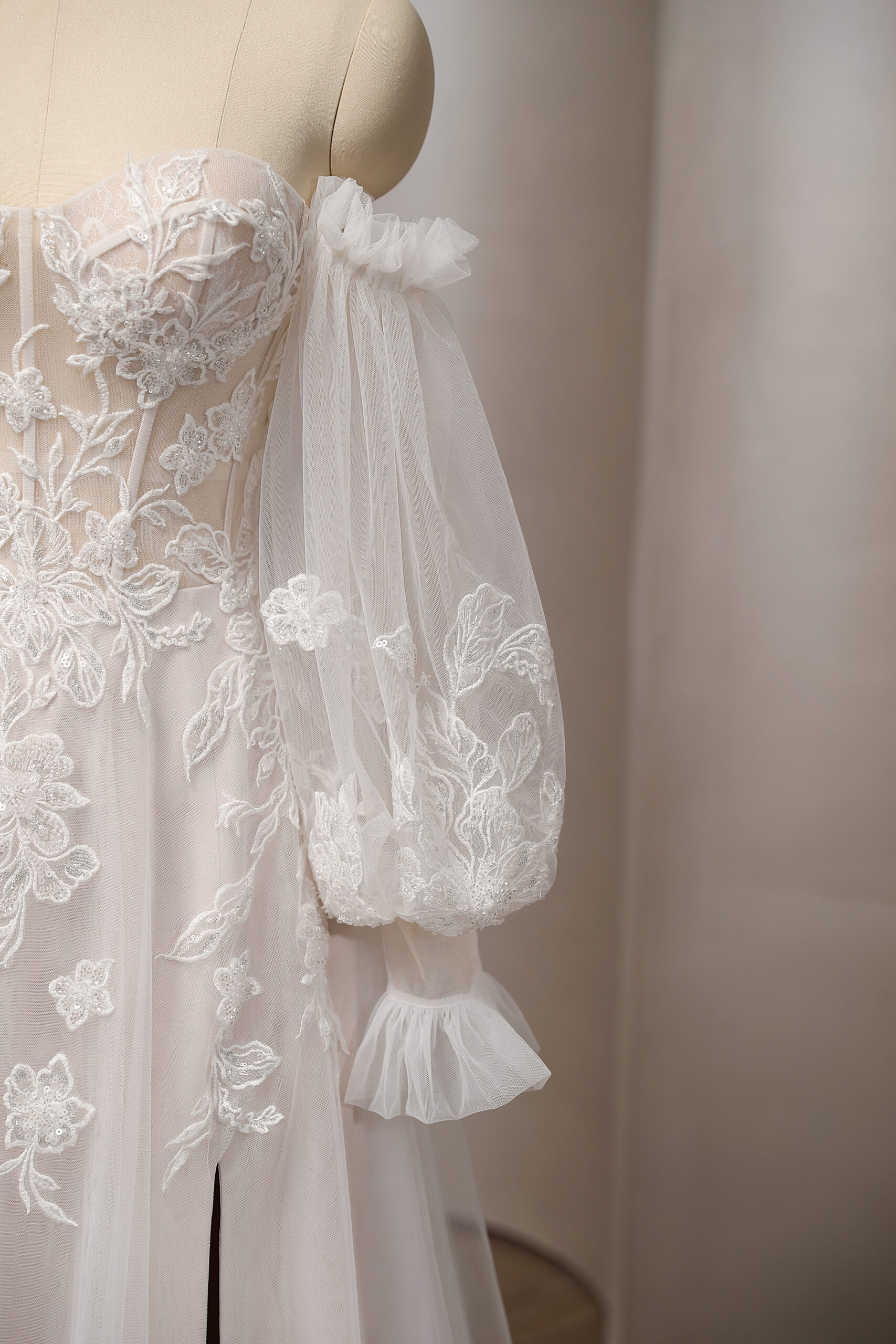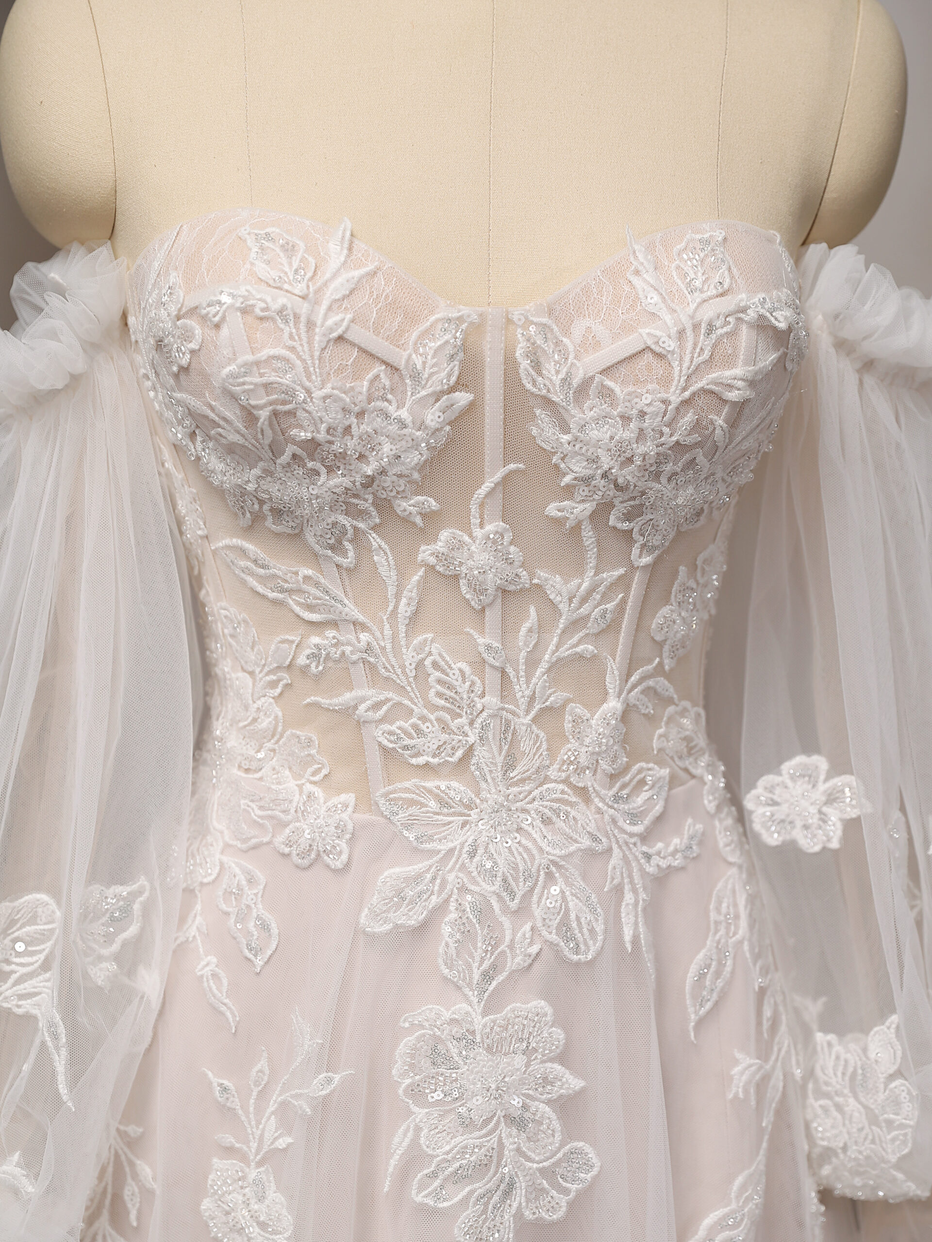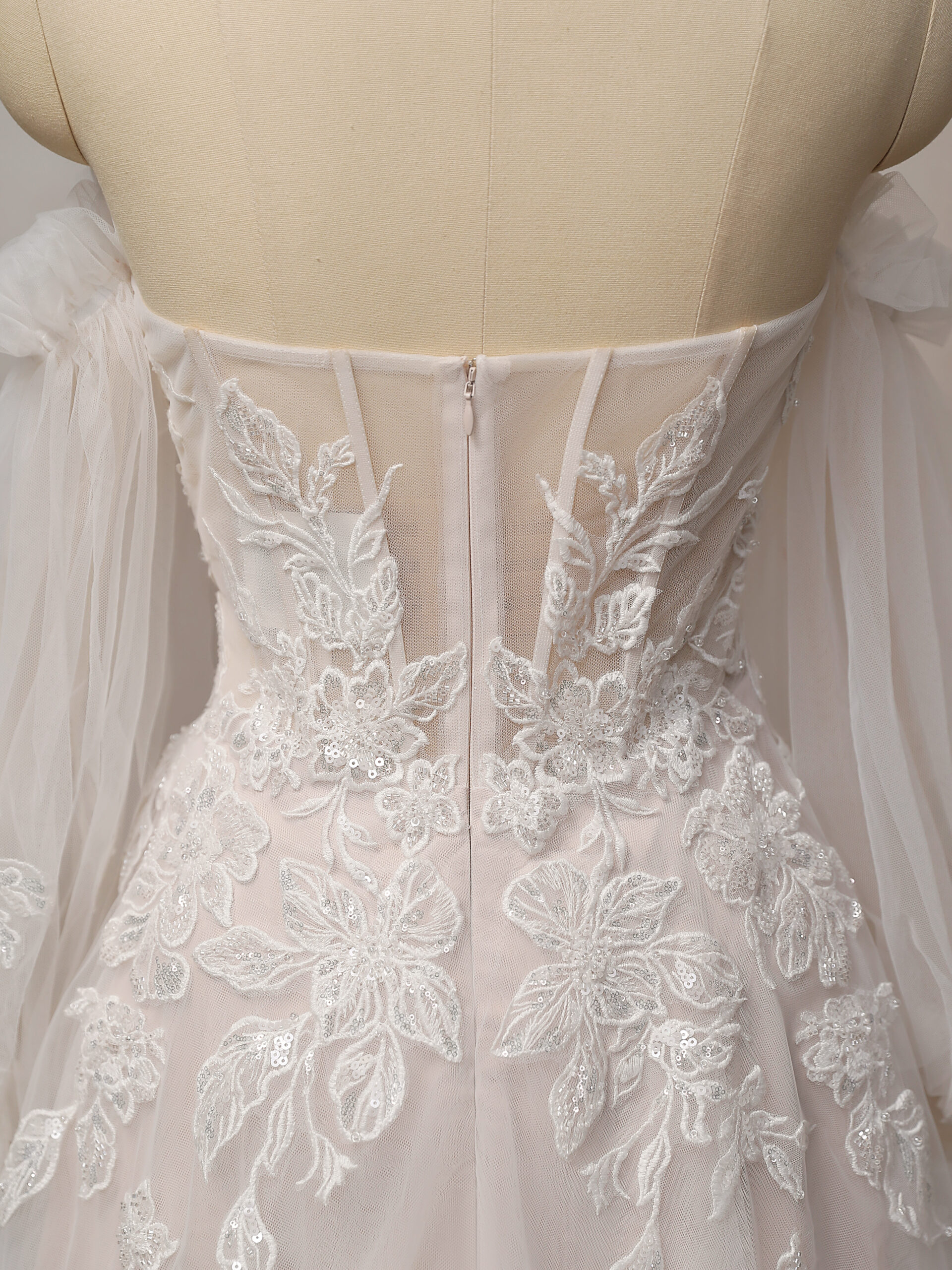 Romantic Detachable Sleeves Wedding Dress with Floral Accents CHB2027