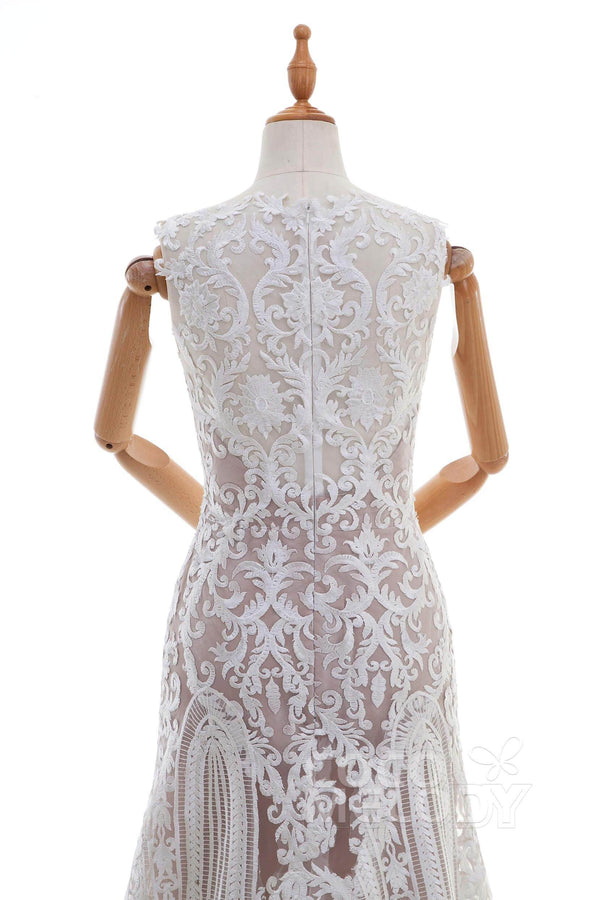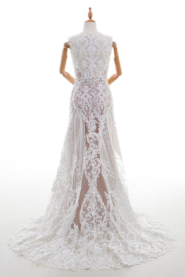 Sheath Sweep-Brush Train Lace Wedding Dress LD4317