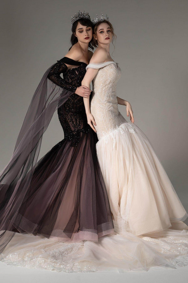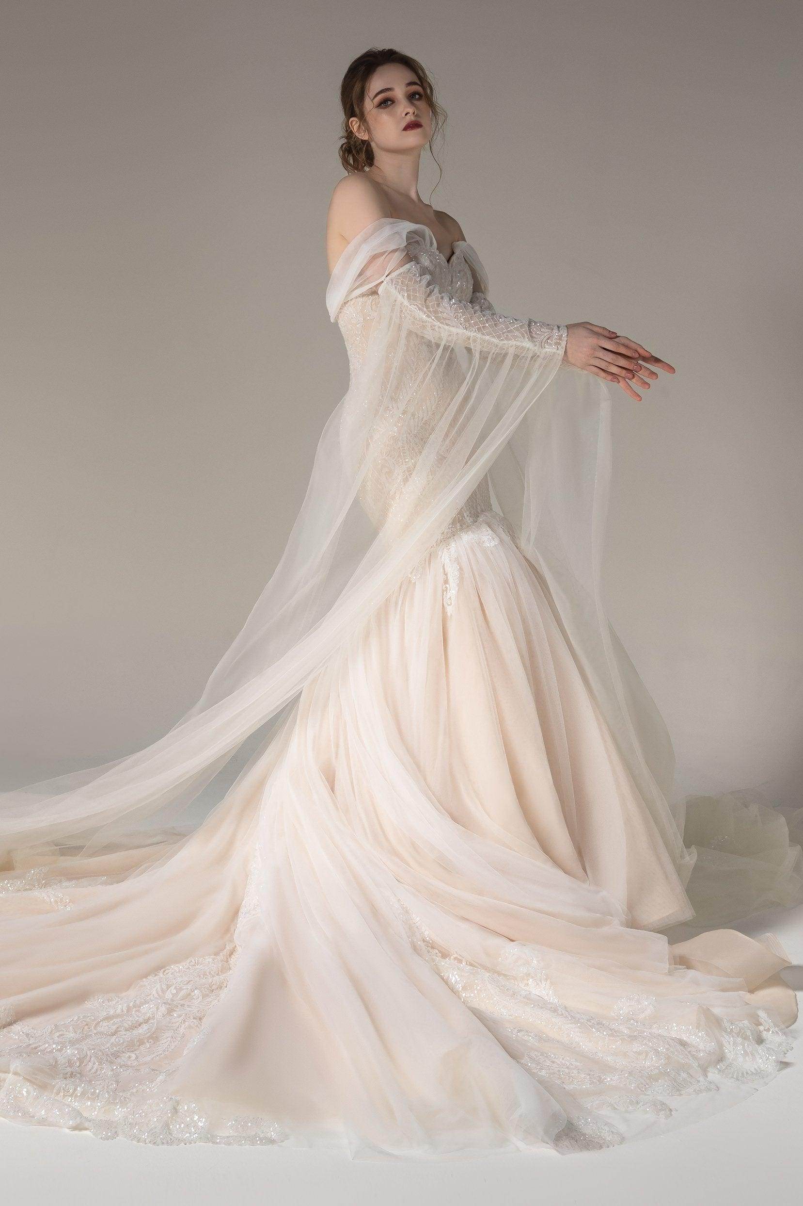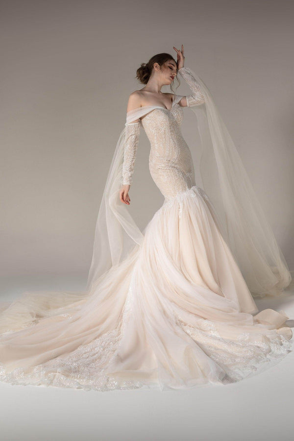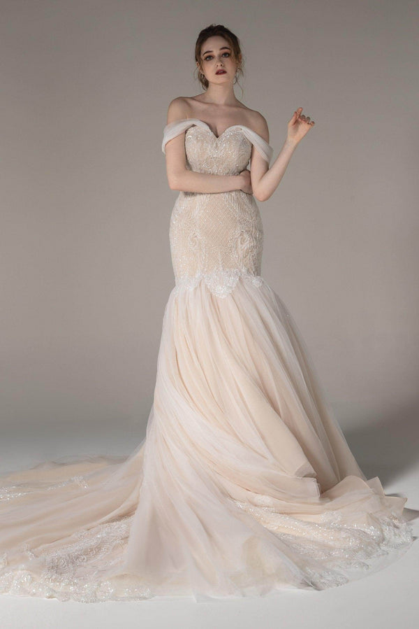 Introducing the AZALEA wedding dress: where elegance meets versatility! Crafted from luxurious sequined lace, this off-the-shoulder trumpet silhouette shines at hotel, church, garden, or hall weddings. Customize your perfect look with exquisite appliques and a chapel train—your ultimate day deserves it!